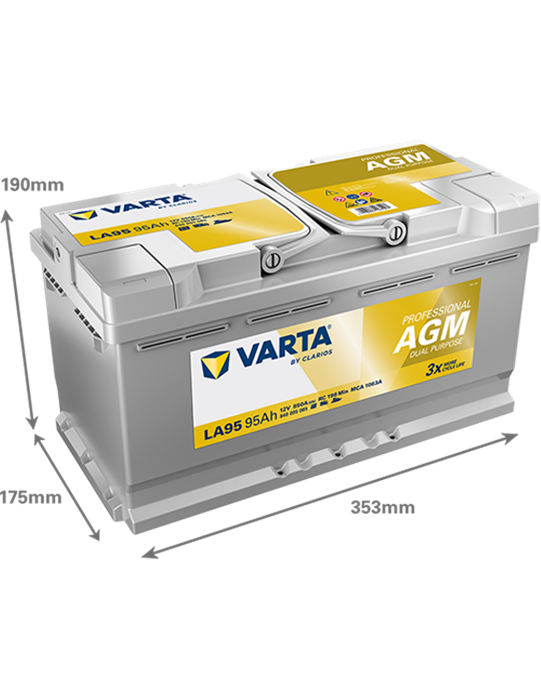 VARTA DYNAMIC AGM LA95 12V 95Ah 850A - Borna Normala (dreapta +)